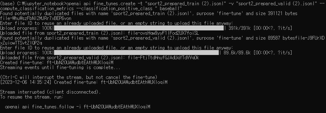 다만 버전 이슈로 fine_tunes.create하다가 오류가 날 경우 아래 게시물 참고.