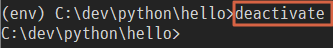 만약 가상환경에서 빠져 나오고 싶다면 deactivate 를 입력 하면 됩니다.