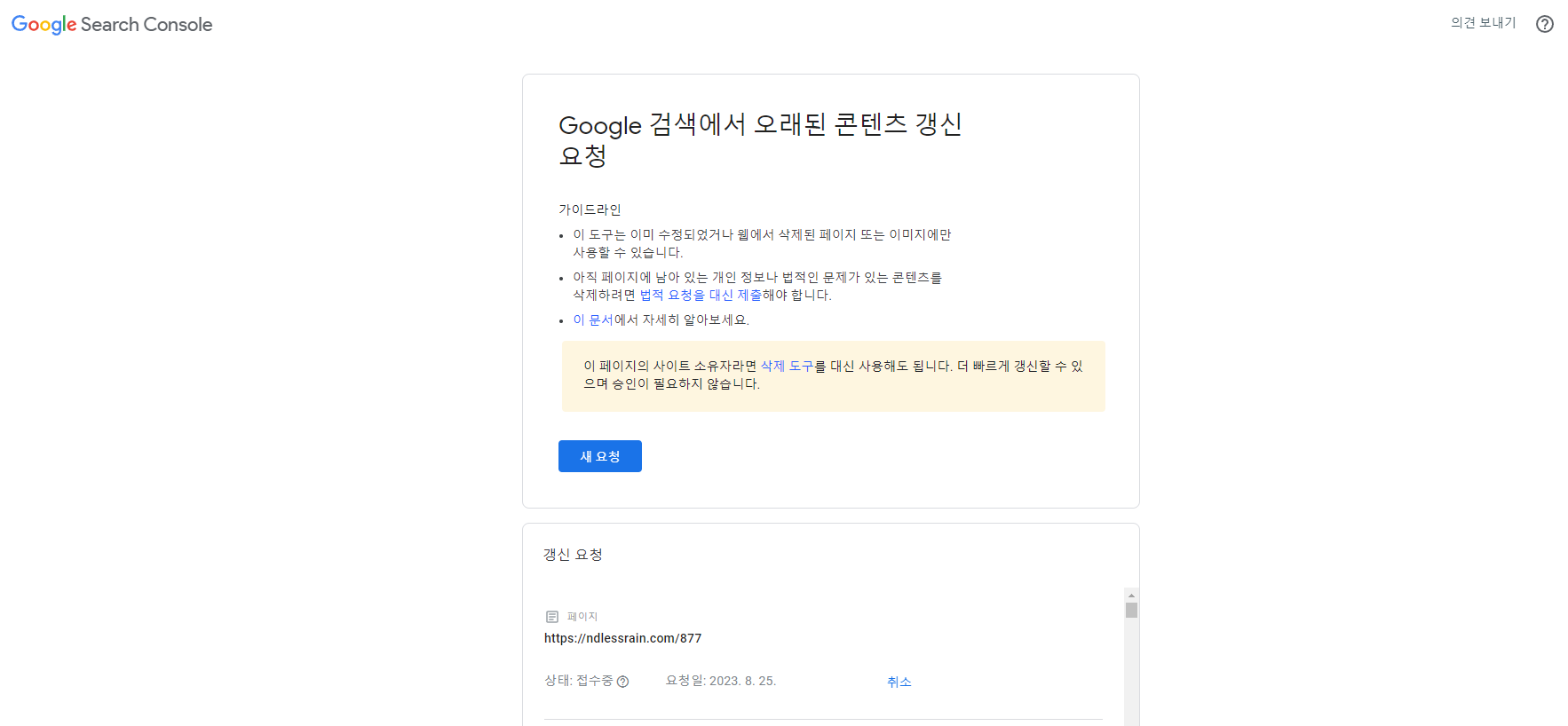 구글 서치 콘솔 오래된 콘텐츠 전체 삭제